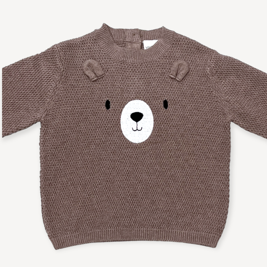 Bear Embroidered Knit Baby Pullover Sweater (Organic)