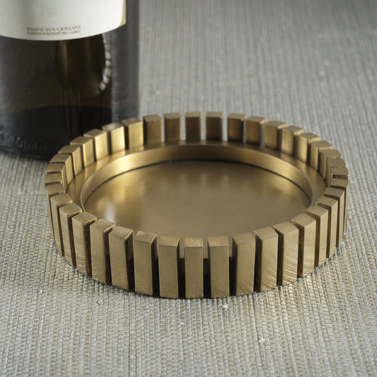 Antique Bone Coaster Set in Metal Tray - Brown & Gold