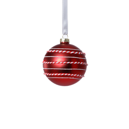 Matte Glass Ornament - White w/ Red Ribbon Design