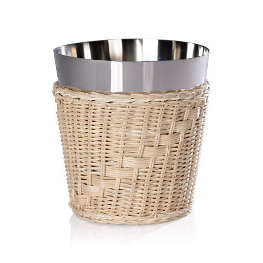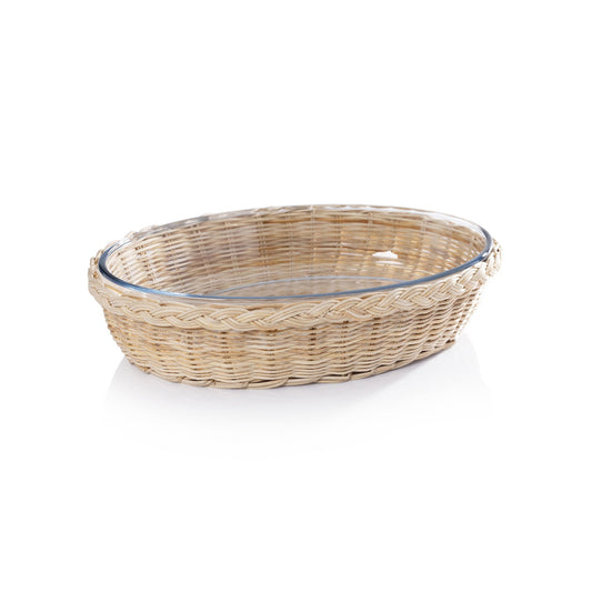The Palmier Oval Glass Bowl in Woven Rattan Basket