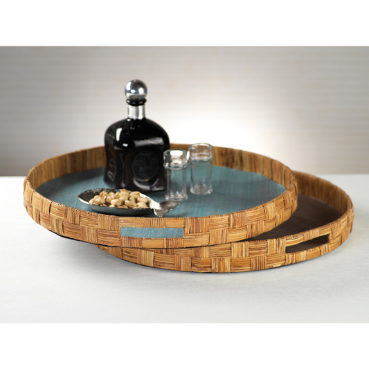 Agrari Abaca Silk Woven Cane Round Tray - Blue