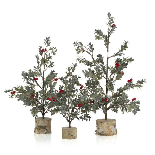 Frosted Mistletoe Tree w/Red Berries on Birch Base