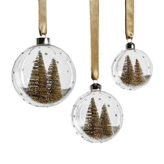 Clear Glass Ornament with Pine Trees - Gold (single)