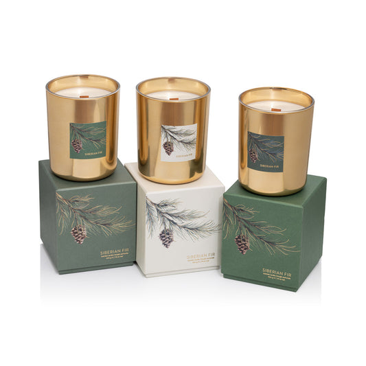 Gold Wood Wick Candle in Gift Box - Siberian Fir