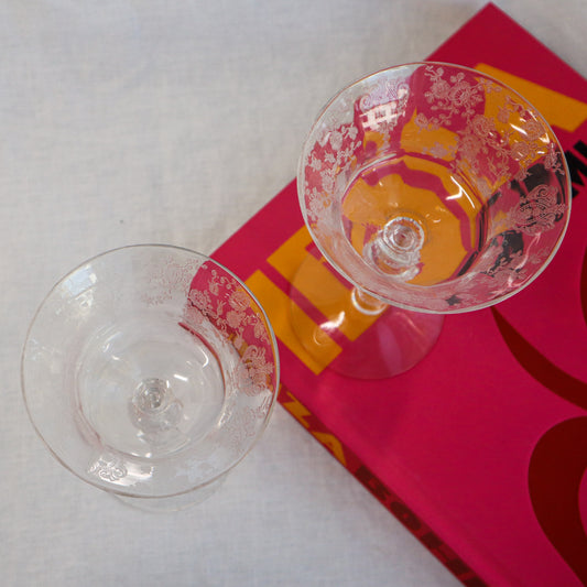 Vintage Etched Crystal Stemware - Set of 2