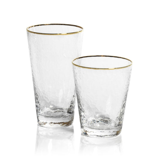 Negroni Hammered Tapered Glasses - Clear with Gold Rim