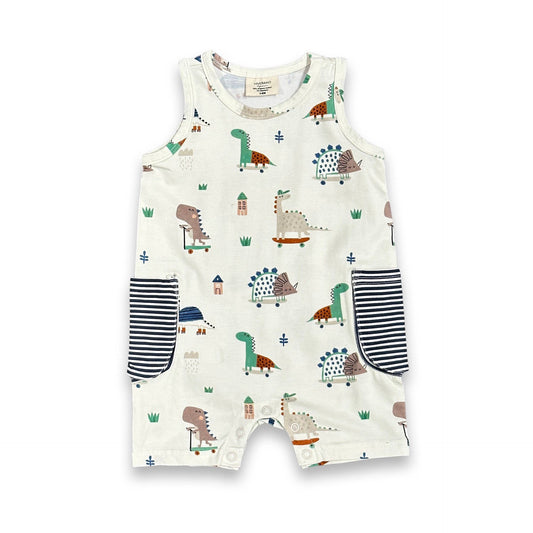Skater Dino Side Pocket Shortie Baby Romper (Organic Jersey)