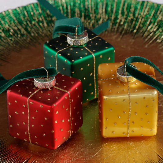 Glass Gift Box Ornament - Set of 6 Assorted
