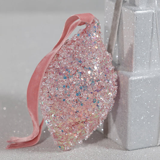 Beaded Teardrop Glass Ornament - Pink - Set of 6