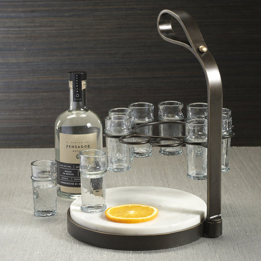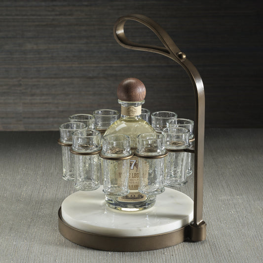 Tequilero 10 Shot Tequila Set with Marble Cutting Board - Dark Bronze