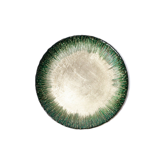 Celestial Rim Glass Dessert Plate - Gold & Green