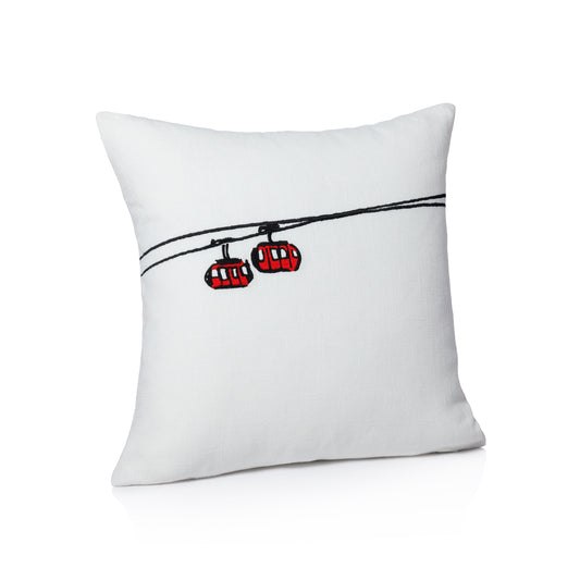 Ski Mountain Cotton Embroidered Throw Pillow - Gondola