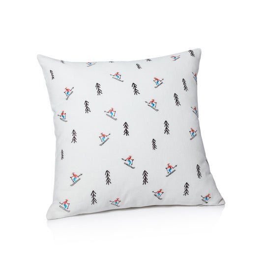 Ski Mountain Cotton Embroidered Throw Pillow - Trees & Skiers