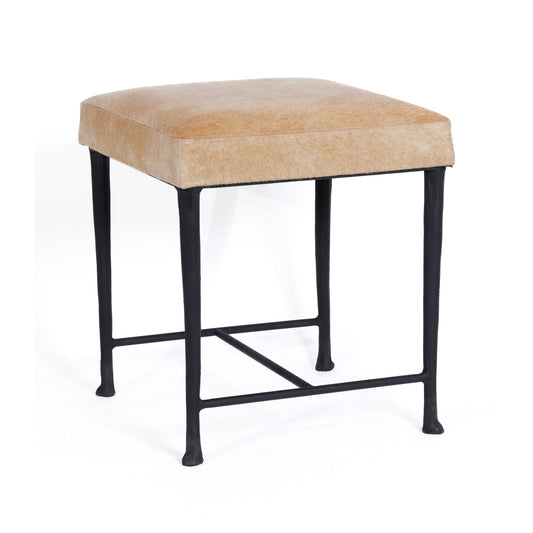 Corviglia Hair On Hide Leather Stool with Forged Iron Base - Tan