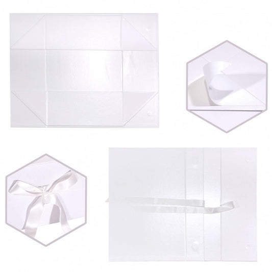 8" x 8" x 4" Collapsible Gift Box w/ Satin Ribbon & Magnetic | White