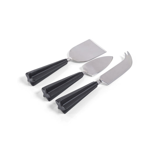 Cheese Knife Set - Set of 3 - Polished Steel and Black