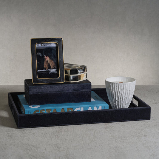 Corviglia Hair On Hide Leather Serving Tray - Navy