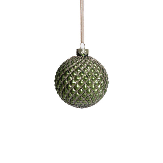 Metallic Glass Ball Ornament - Matte Green
