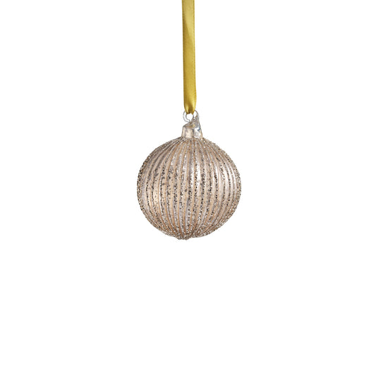 Shiny Silver Glass Ornament with Gray Flock Pattern
