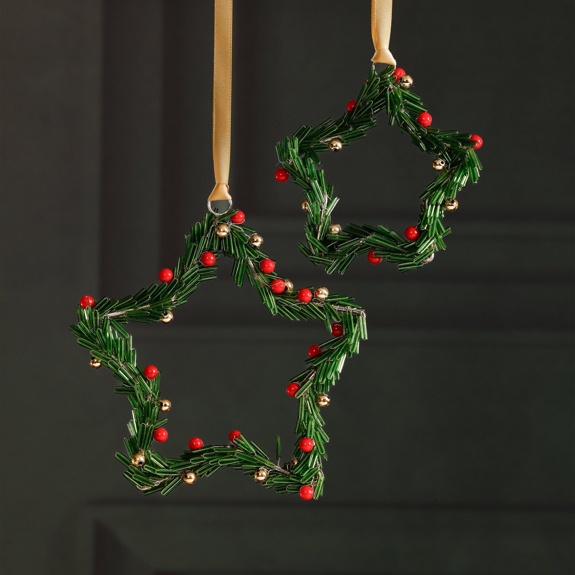 Elevate your holiday décor with this elegant set of six beaded star ornaments. Each piece features intricate beadwork that catches the light beautifully, adding a refined sparkle to your tree. The timeless star design complements any aesthetic, from traditional to contemporary. Perfect for creating a cohesive look or gifting to the discerning decorator in your life. These ornaments bring understated luxury to your seasonal celebrations.