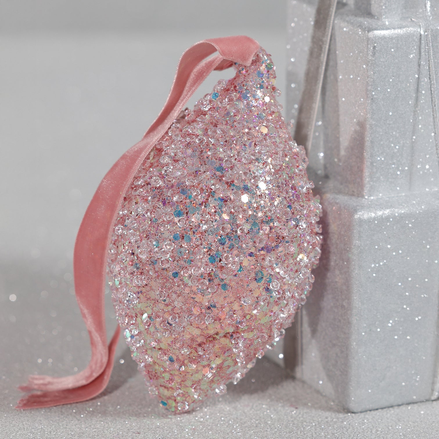 Add a splash of whimsy to your holiday decor with this Beaded Teardrop Glass Ornament in cheerful pink. Its sparkling beads catch the light, creating festive twinkles that bring joy to any tree. Lightweight and charming, it's a playful way to make your celebrations extra bright and full of fun.