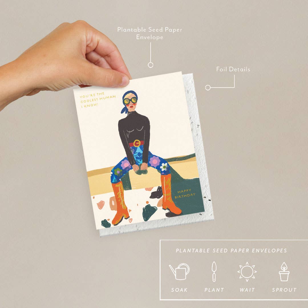 All Seedlings greeting cards have foil details and a PLANTABLE seed paper envelope which is embedded with wildflower seeds. This seed paper is made of a biodegradable eco-paper created with post-consumer materials - no trees harmed for this paper! When planted, our envelopes compost away leaving only flowers behind. Blank inside, our cards are printed on premium paper and are all accented with foil details. All Seedlings cards are made in the U.S.A. Need a display? Order BOUDIS48 for a 48 pocket spinner or BOUDIS24 for our 24 pocket spinner. All of our cards are also available with NO cello. Message us if you want your cards naked! Card size: 4.25" x 5.5" Env: 4.3125" x 5.75" (A2)