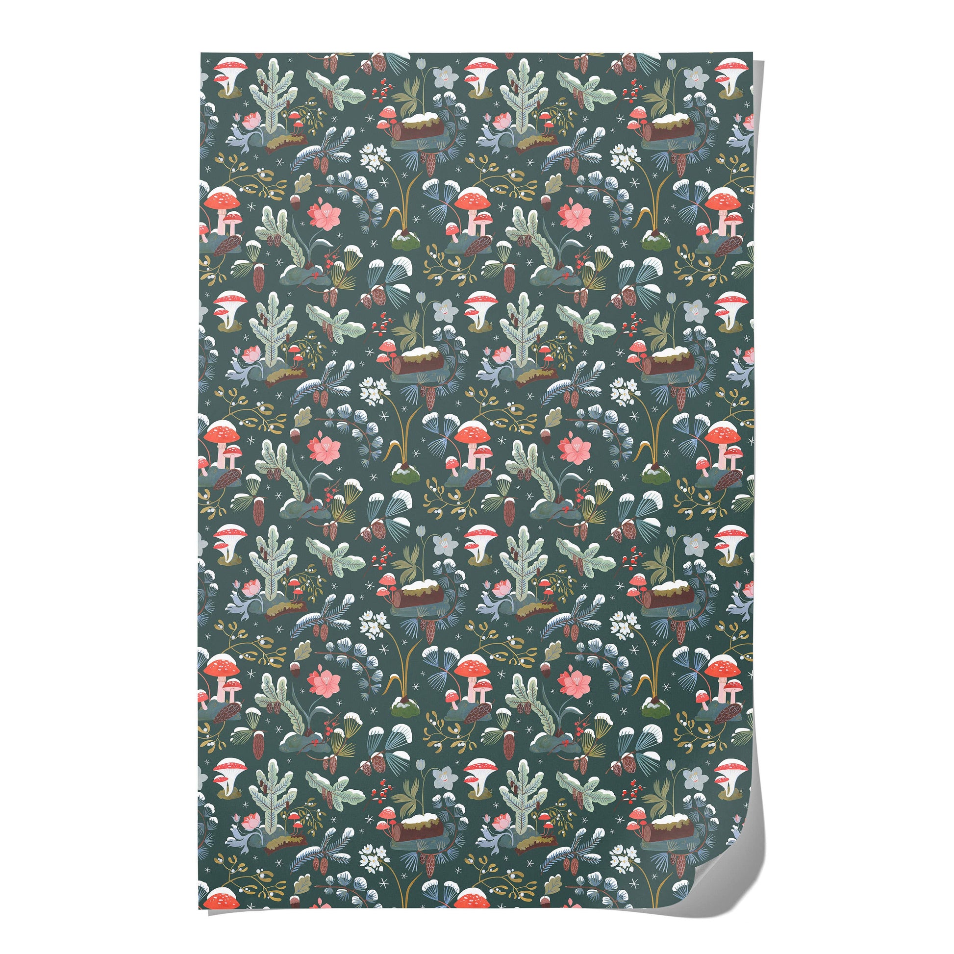 Sold as individual 19 x 27 inch sheets of flat wrap, or as 3 sheets rolled and sealed together in cellophane (without a cardboard core). Illustrated by Kelsey Garrity Riley. Printed by Red Cap Cards in Los Angeles, California, USA, on recycled paper.