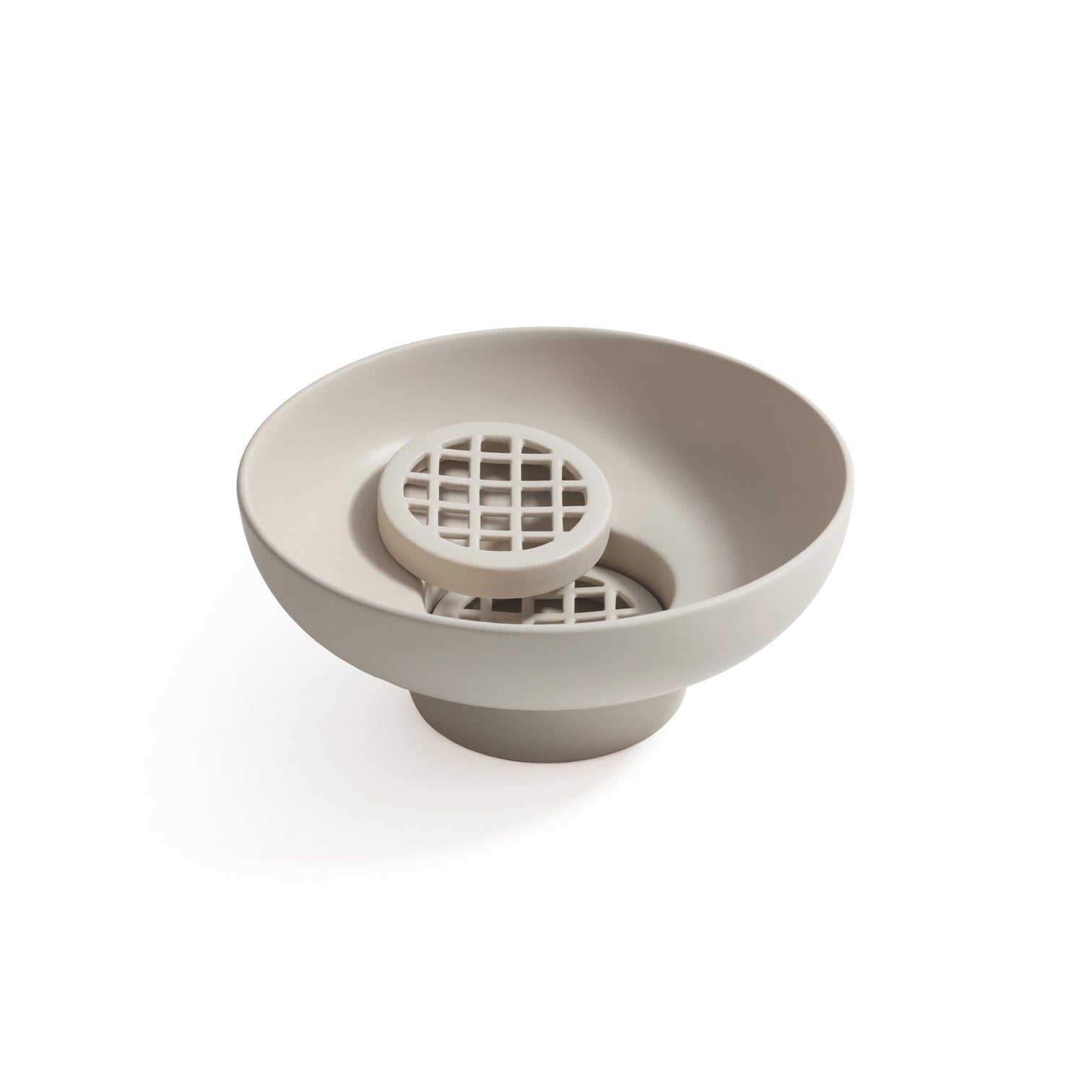 Crafted in a smooth matte finish and elevated on a subtle pedestal base, this ikebana vase creates a grounded silhouette that feels both modern and timeless. Each bowl includes a removable floral frog (kenzan-style insert) to securely anchor stems, allowing for effortless minimalist arrangements, asymmetrical compositions, or structured floral design.