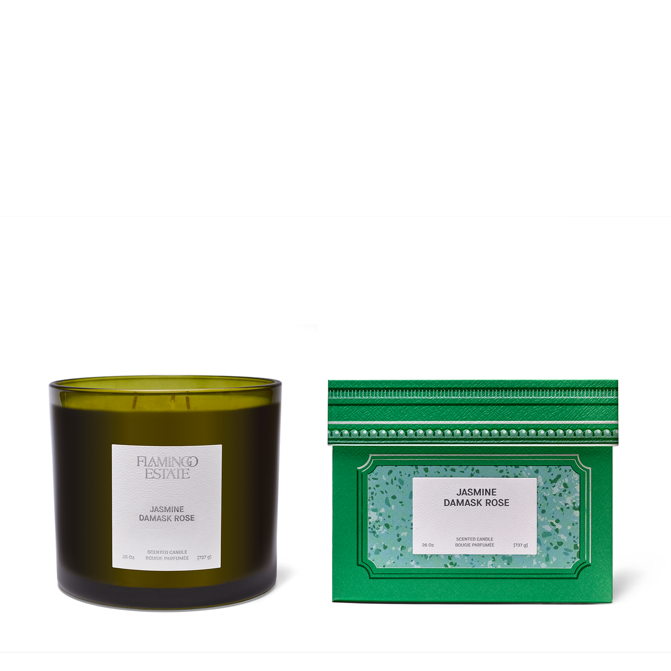 Designed to scent a space generously, the Flamingo Estate Jasmine & Damask Rose Candle is more than three times the size of the standard candle, delivering a far-reaching, long-lasting fragrance. Inspired by the plants growing outside the Flamingo Estate, this lush floral blends night-blooming jasmine with the romantic depth of damask rose.