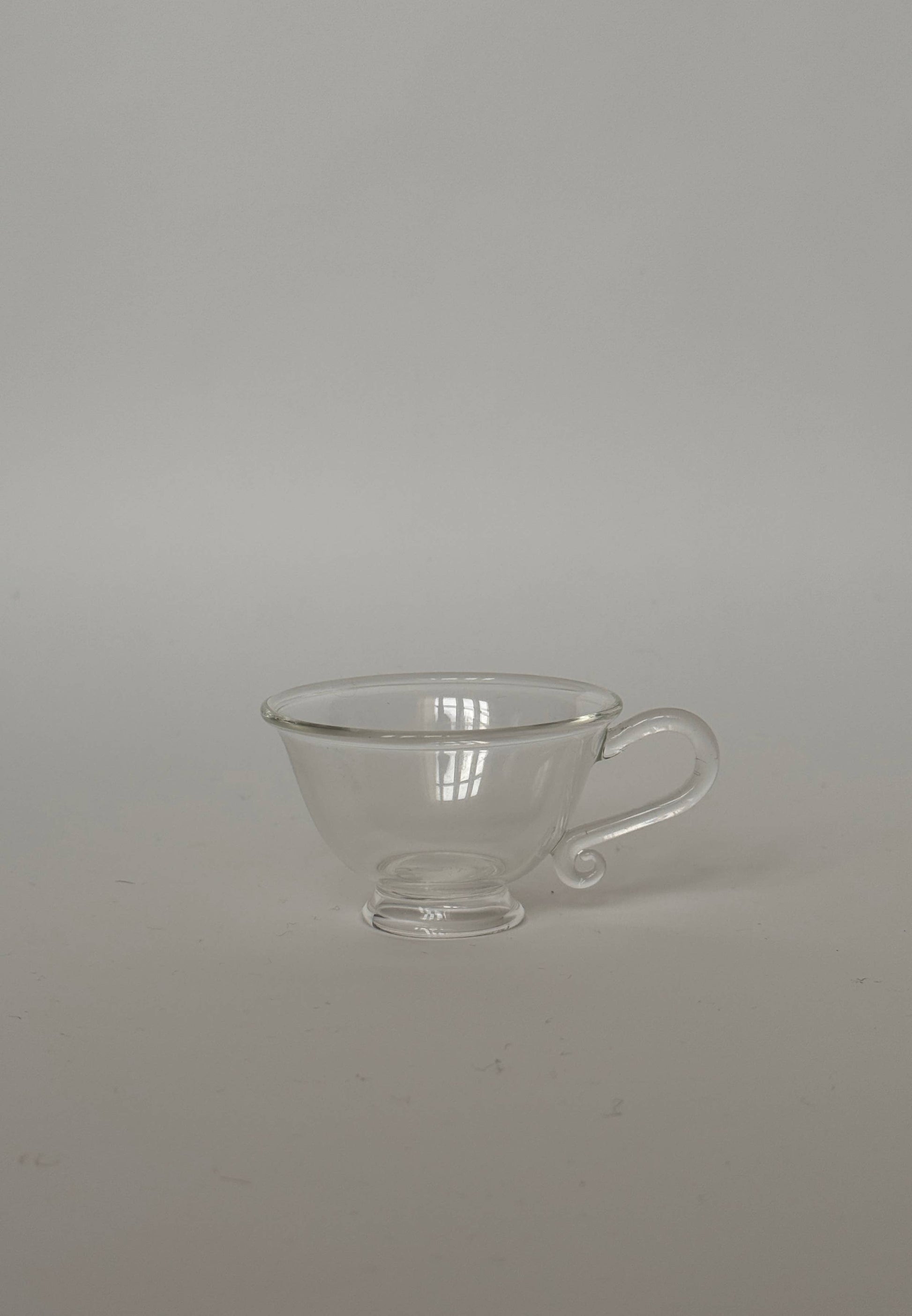 The distinct curling glass detail feels like jewelry for your morning ritual—elegant, tactile, and a little flirtatious. Sized at 2.5 oz (75 ml), it’s ideal for espresso, macchiatos, or a petite cup of tea. The clear silhouette lets you admire the crema, the color, the moment.