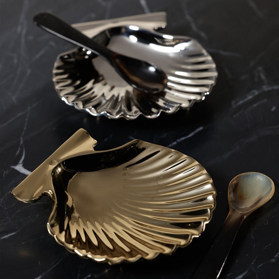 A small object with serious shine. The Sanibel Shell Tray is crafted in polished brass and finished in your choice of gold or nickel—a luminous, sculptural catchall shaped like a seashell with crisp ridges and an elevated, jewelry-like presence.