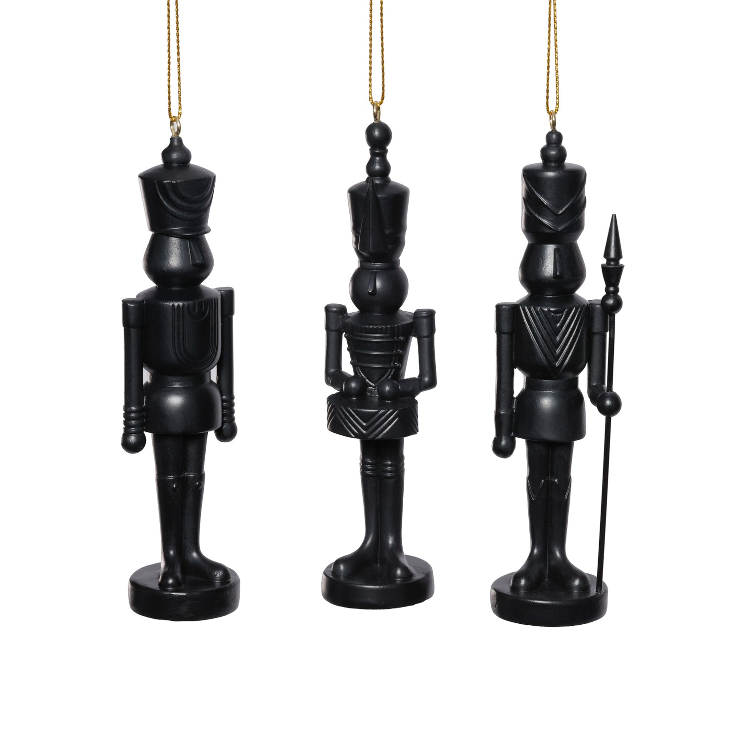 Add a festive touch to your holiday décor with this set of 3 assorted soldier ornaments in black. Each ornament brings classic charm and timeless appeal, perfect for creating a warm and joyful atmosphere on your Christmas tree. Their versatile design makes them an ideal gift or a stylish addition to your seasonal collection. Celebrate tradition with these beautifully crafted soldiers that will brighten your celebrations for years to come.