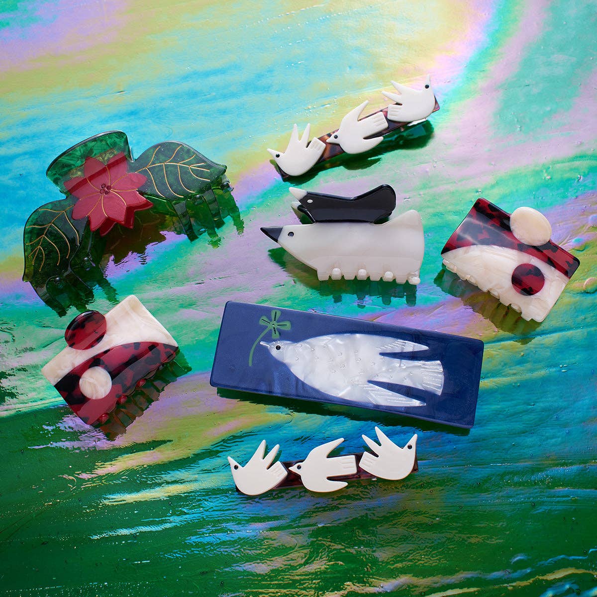 *Please note that due to the nature of the material, each hair accessory will have differences in color and pattern. Each hair accessory is made from individually cut pieces of cellulose acetate. Each one is unique!
