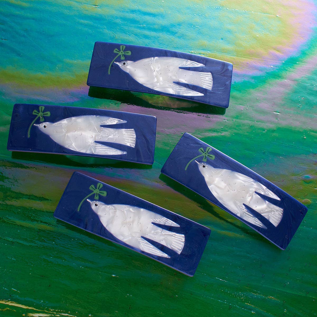 WhiteDove with Four Leaf Clover Acetate French Barrette Clip
